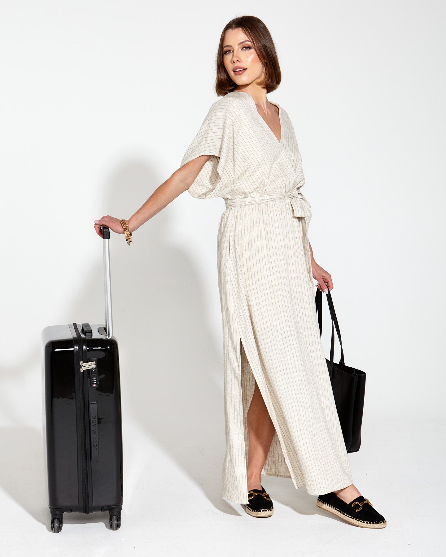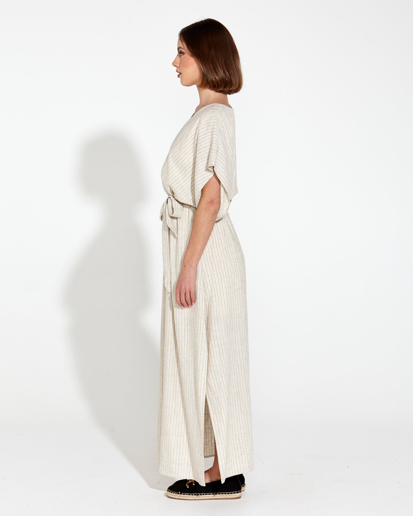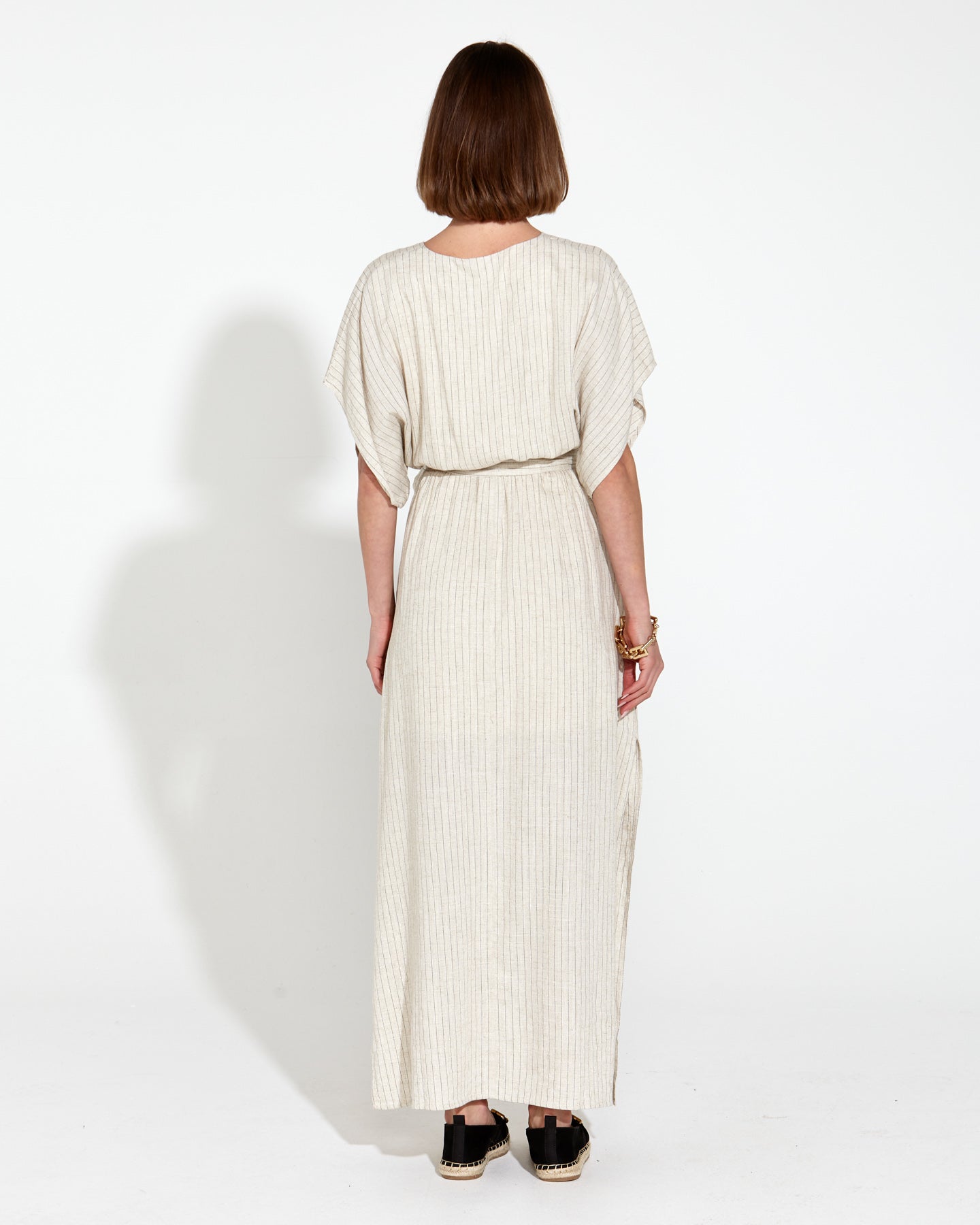 Heritage Linen Maxi Dress - Natural Pinstripe