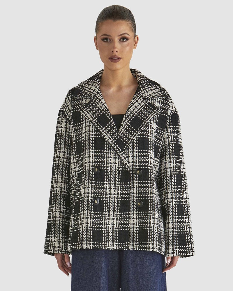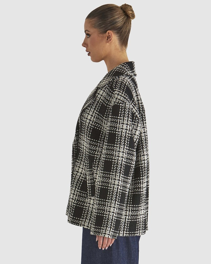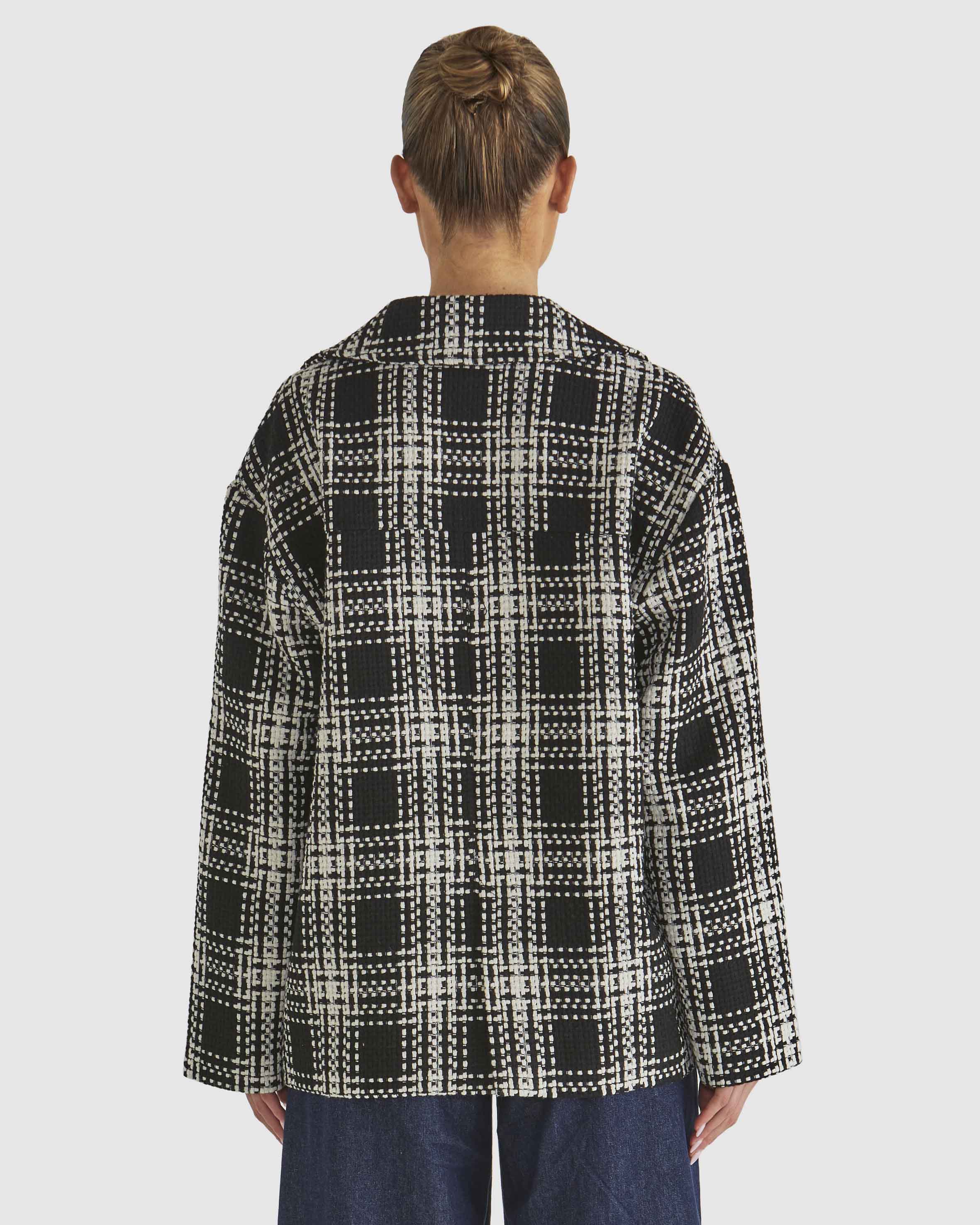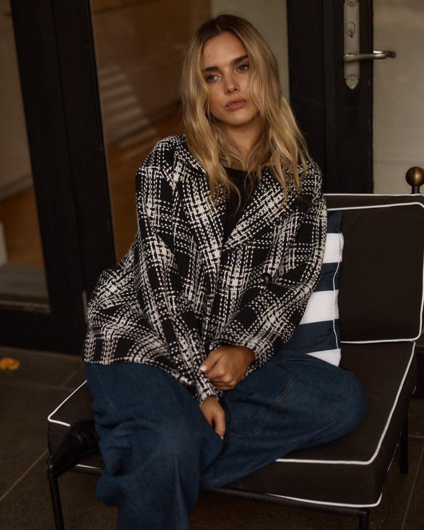 The Playback Jacket combines texture and structure in the most effortless way. Branded FB buttons and textured boucle fabric give it a polished, elevated feel. Side pockets add a practical touch, while the oversized fit ensures easy layering. A must-have for current, on-trend styling.