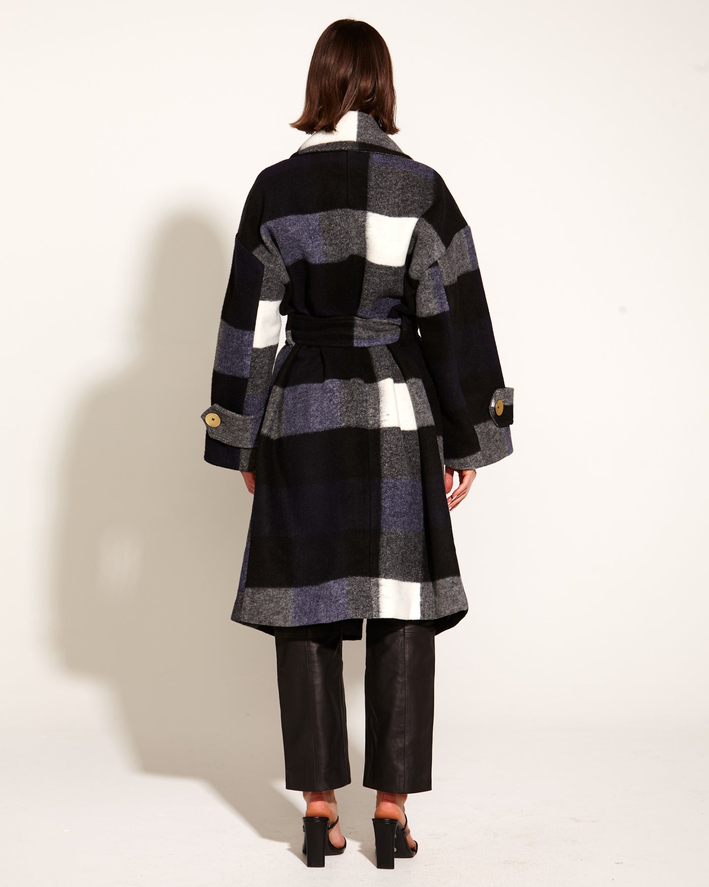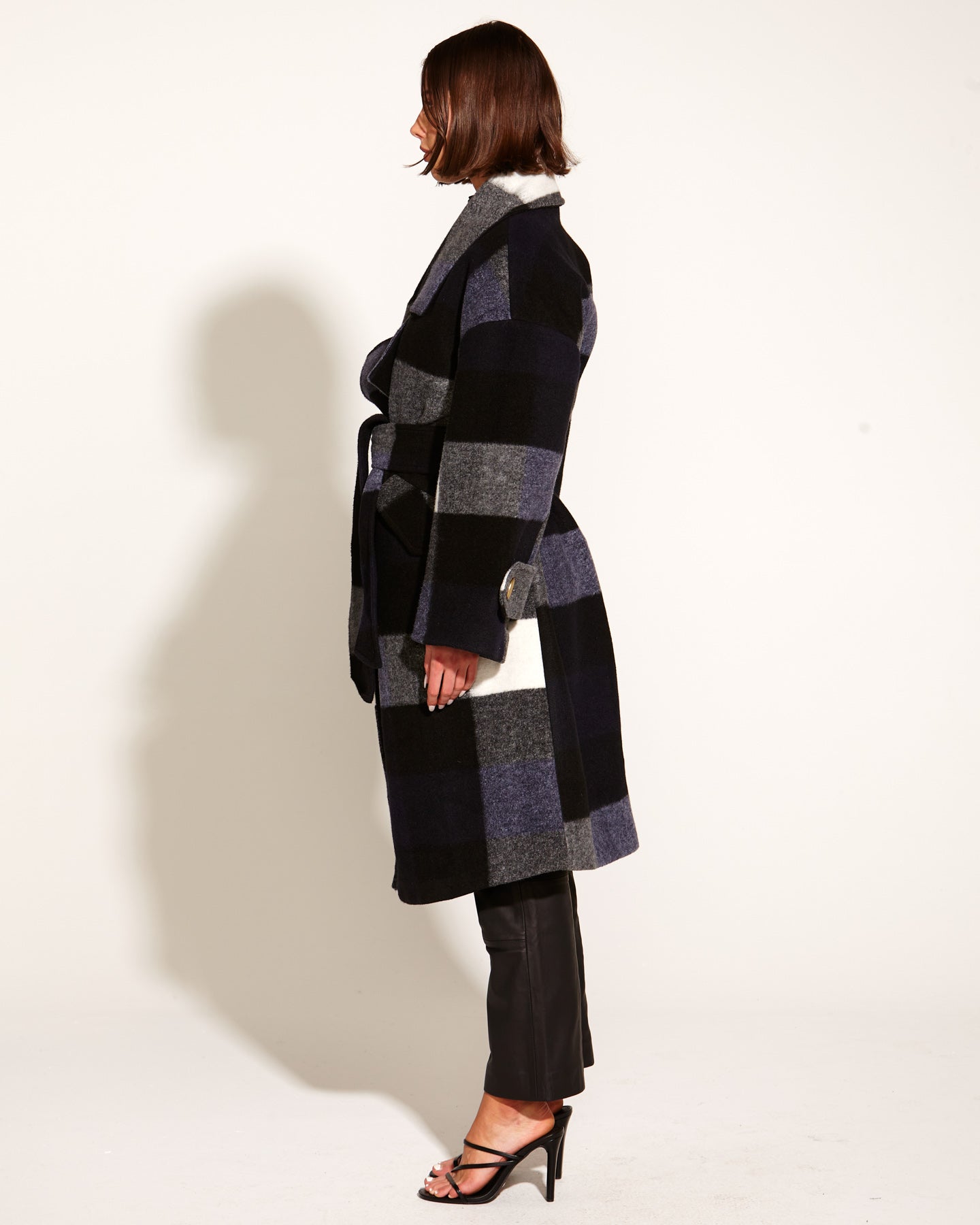 Stranger Oversized Collared Waist Tie Coat - Navy Check