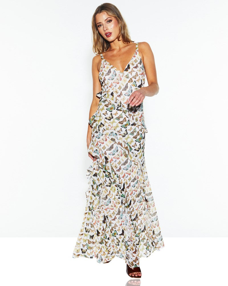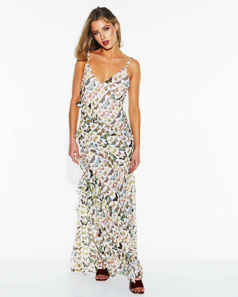 Taking Flight Ruffle Dress - White Butterfly