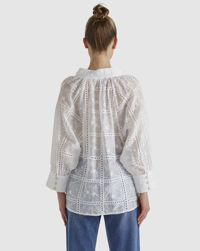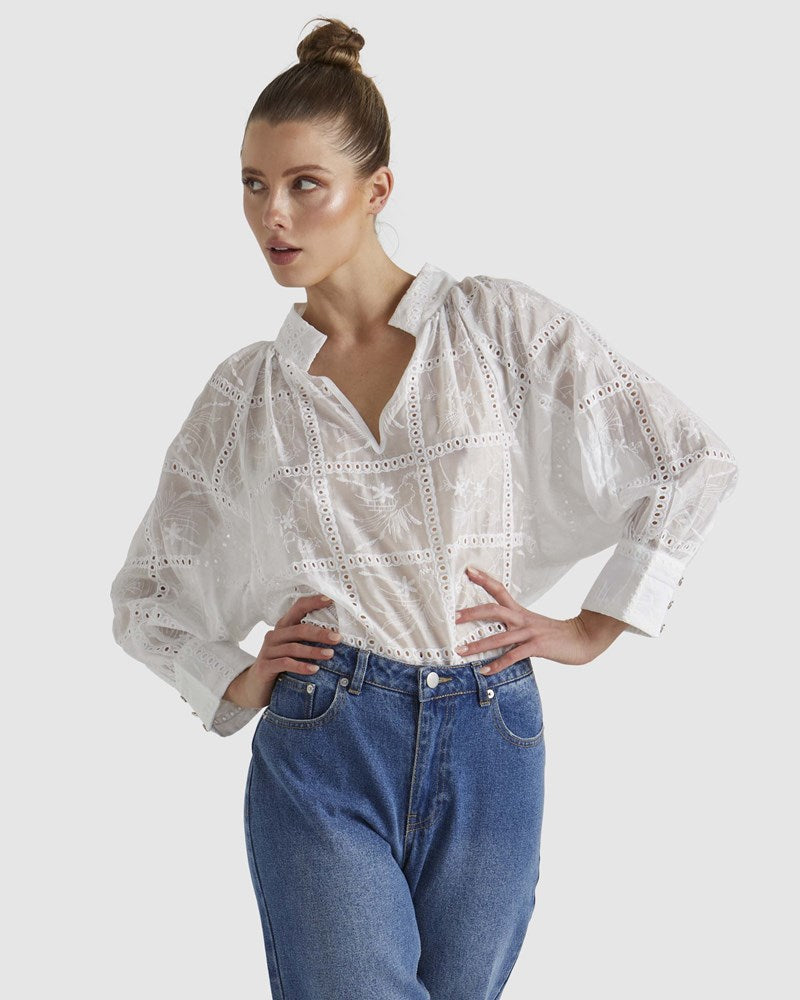The Whisper Top redefines relaxed luxury with its keyhole front and wide-collar design. Featuring wide sleeves with cuffs, this piece is the perfect blend of comfort and refinement for an effortlessly stylish wardrobe.