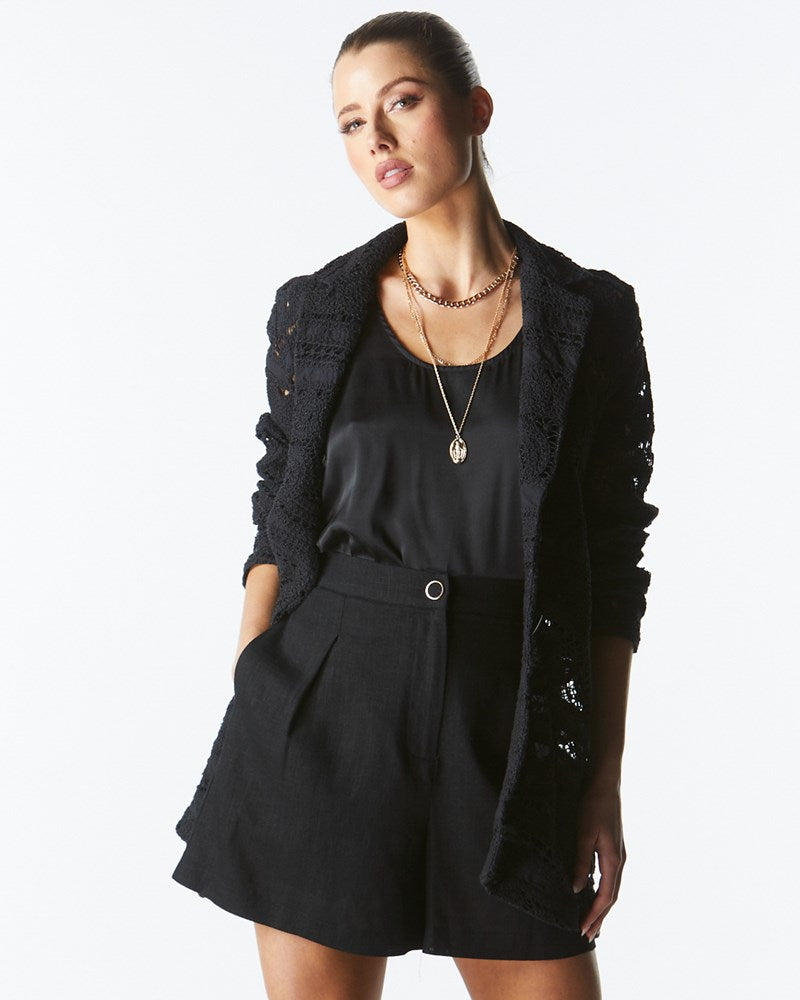 The Worth It Lace Blazer is the epitome of elegance with its single-breasted design and 3/4 ruched sleeves. Finished with Fate + Becker buttons, it offers a sophisticated, refined touch for every occasion.