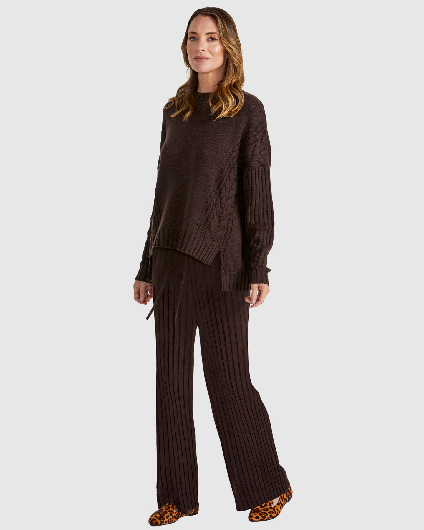 The Catalina Knit is a refined winter essential, featuring a round neckline and cable detail on the sleeves. Ribbing on the sleeves adds a touch of texture, while the soft knit fabric ensures comfort and chic elegance. This piece offers a sophisticated, regular fit ideal for winter days.