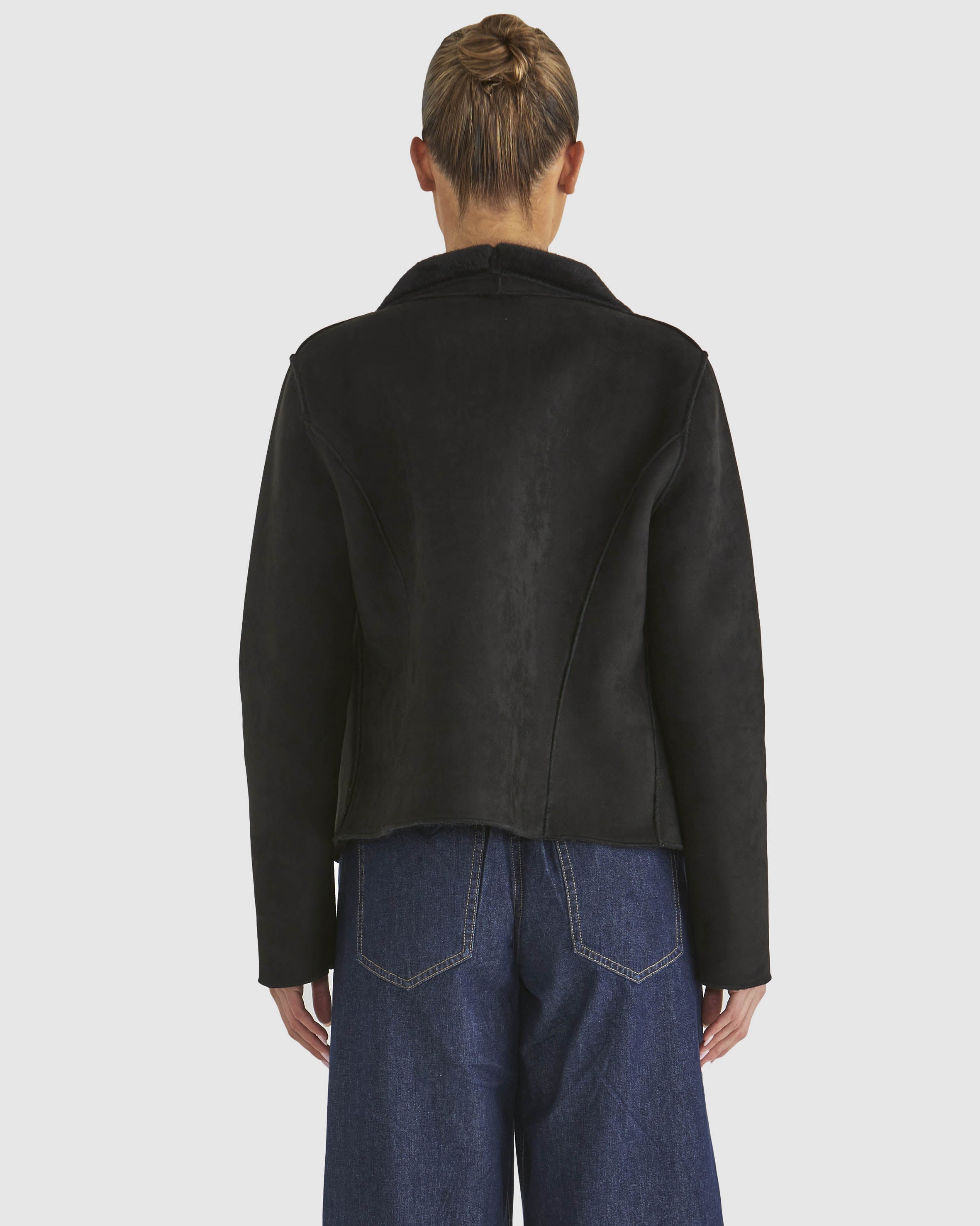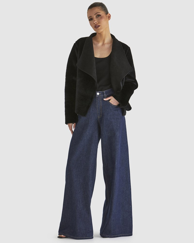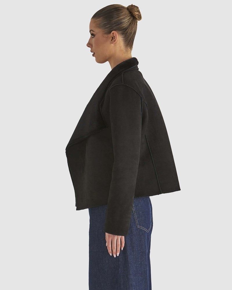 A luxurious and versatile staple, the Behold Reversible Fur Jacket offers the perfect balance of style and comfort. With a soft textured fabric and large fold-back collar, this unlined jacket drapes effortlessly for a relaxed fit. Wear it fur-side out for an elevated, plush look or switch to suede for a refined, modern feel. An autumnal must-have that transitions seamlessly from day to night.