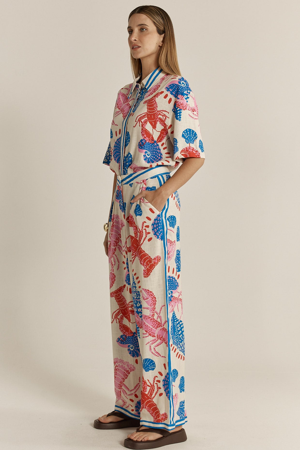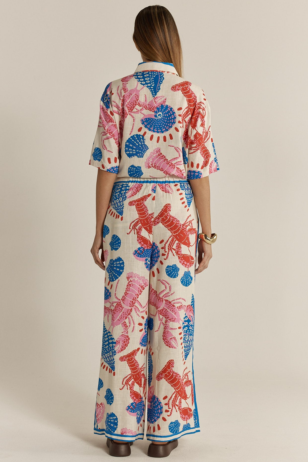 The Soleil Pant is the definition of elevated ease. Featuring a wide leg and soft drape, it’s designed in our exclusive print with border detailing for subtle sophistication. Side pockets complete the silhouette. Effortless and refined — perfect paired with the matching shirt.