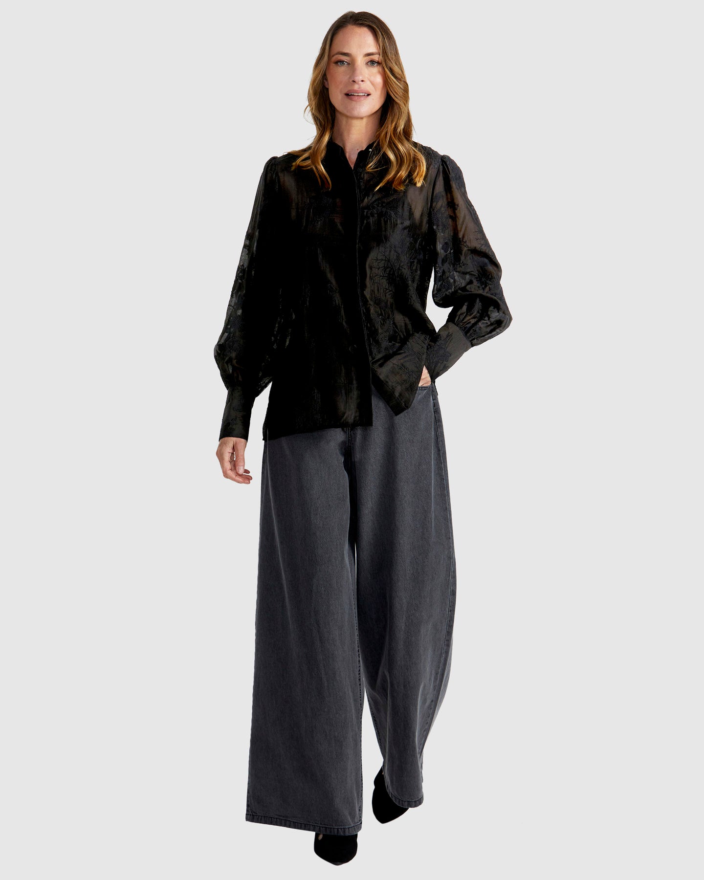 The Aurora Shirt brings an elevated touch to any wardrobe. Featuring stunning crane embroidery and a detachable cami, this piece combines a wide sleeve cuff with long, puffy sleeves. Its concealed placket and relaxed fit create a sophisticated, timeless look for cooler months.