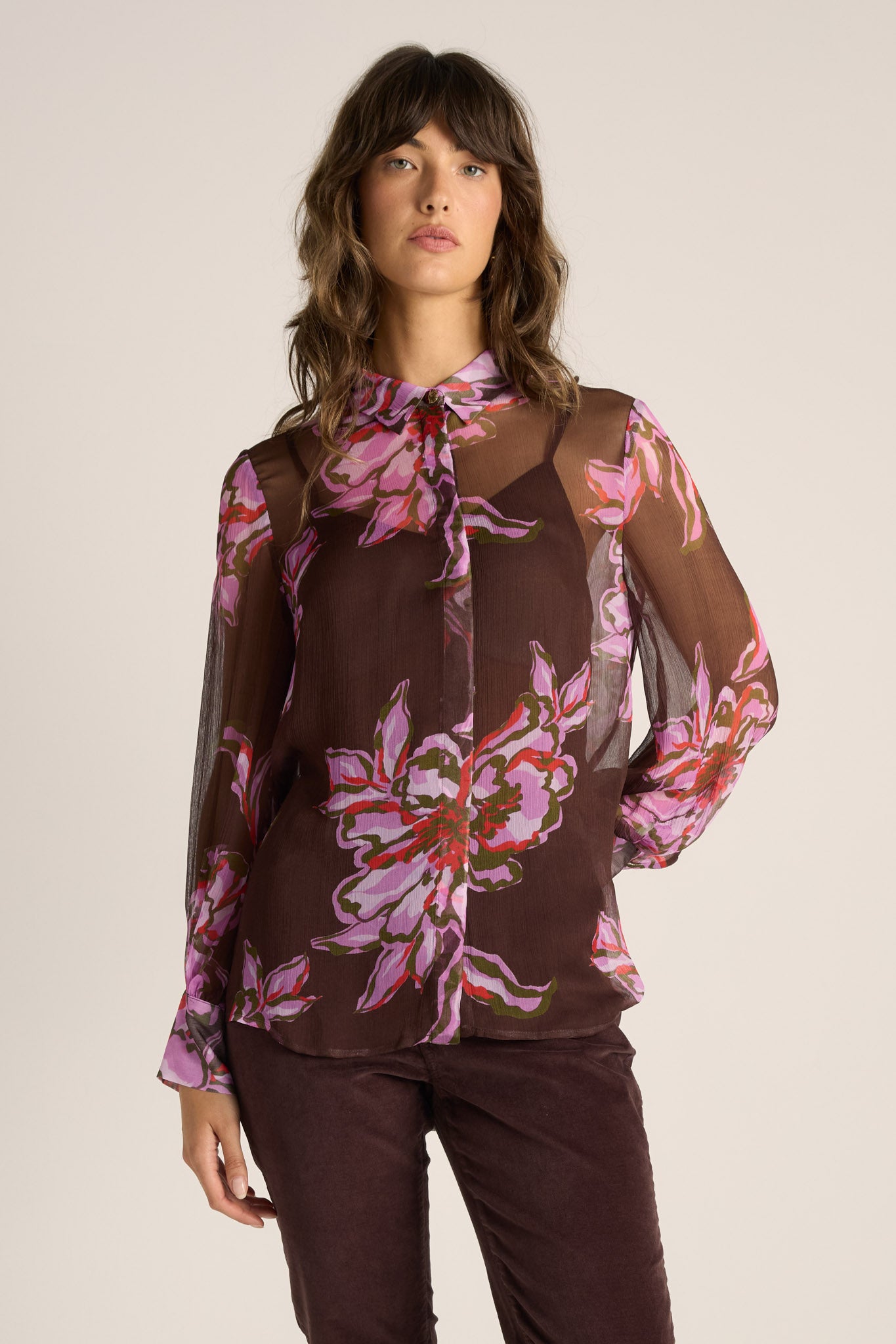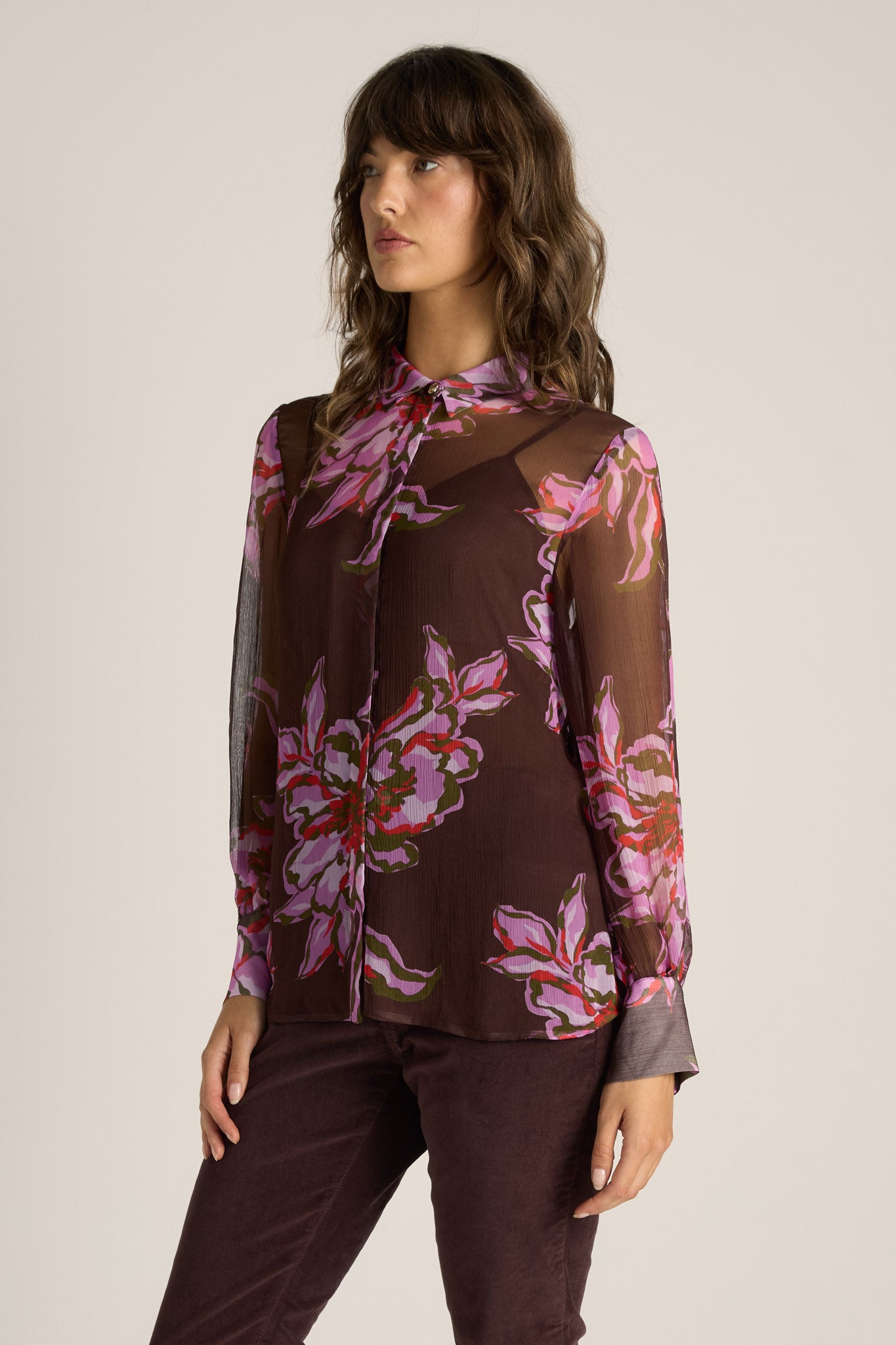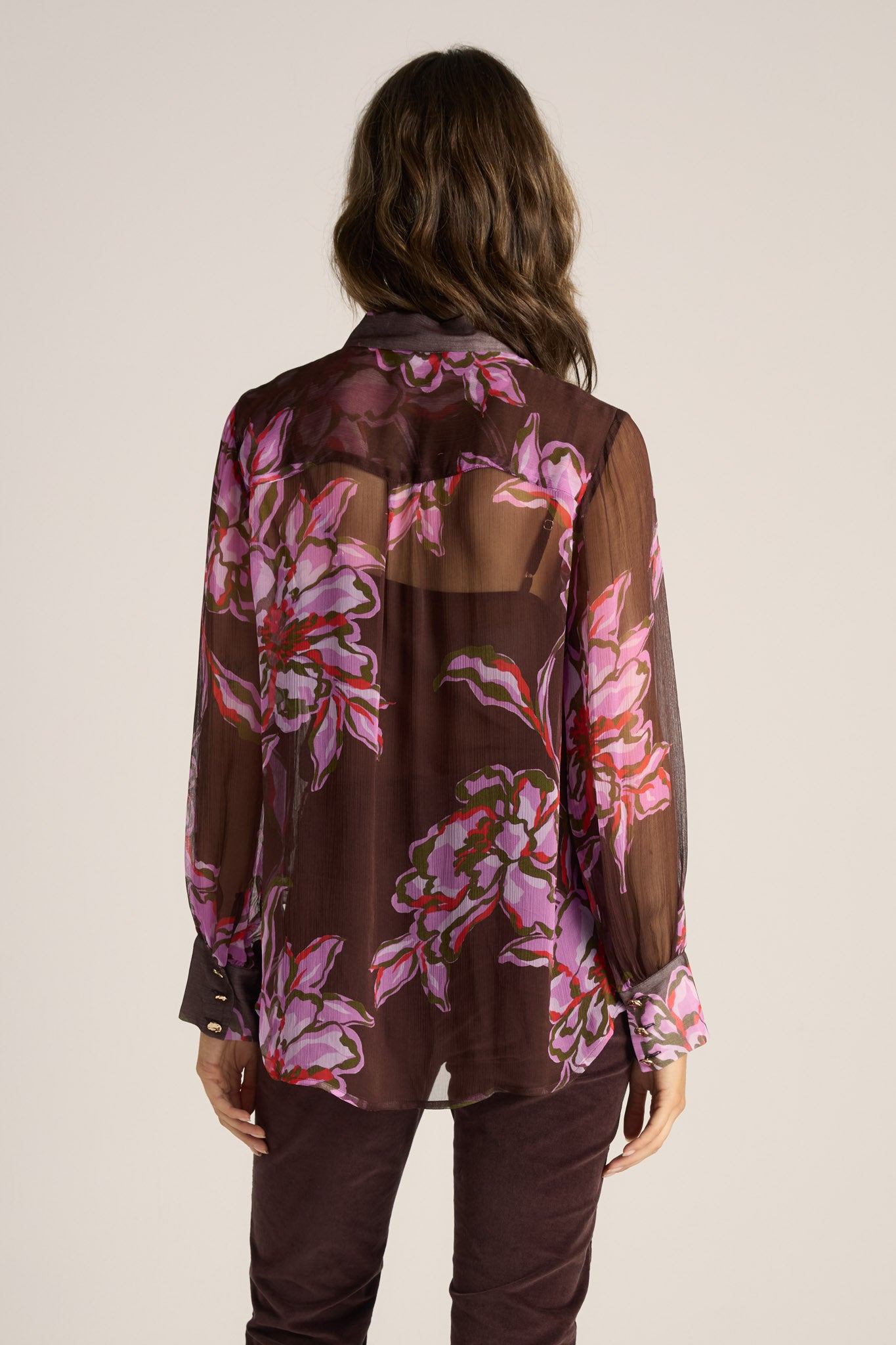 -Sheer long-sleeve blouse