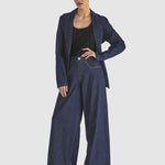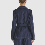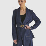 Tailored elegance meets modern edge in the Soaring Blazer, featuring a self-fabric belt with a gold buckle. Functional pockets add practicality, while the fully lined denim fabric creates a structured yet refined silhouette. Designed for a regular fit, this blazer is a polished layering piece. A must-have for contemporary sophistication.
