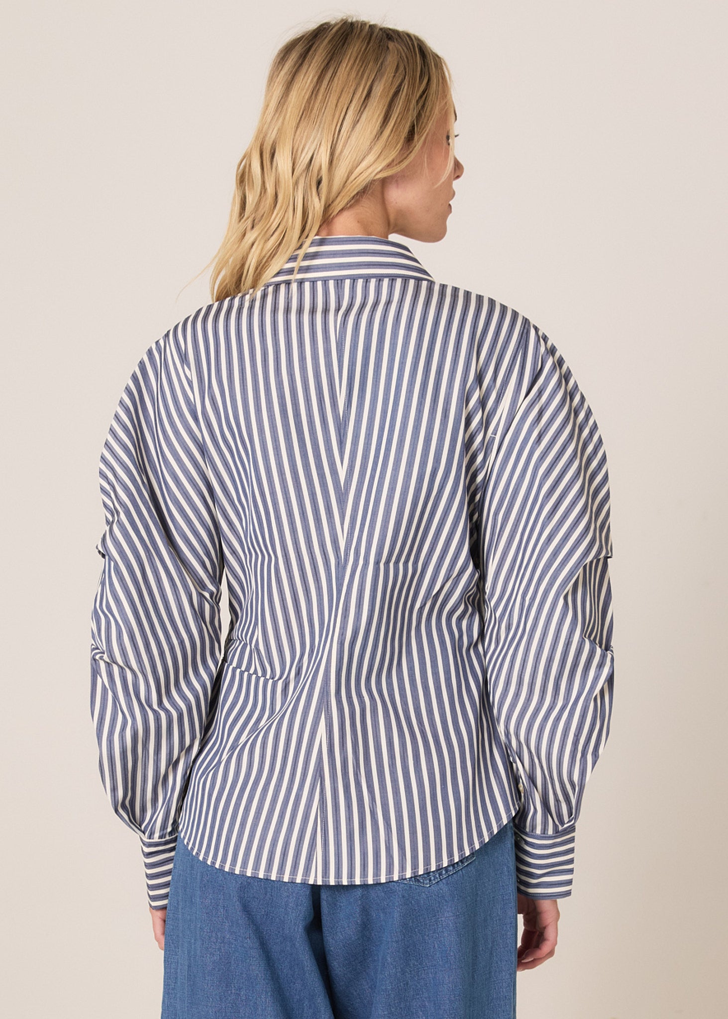 Aspen Asymmetrical Opening Shirt - Navy Stripe