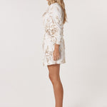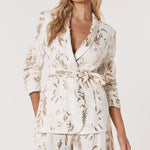 The Ines Sequin Linen Blazer is an elevated statement in texture and light. Crafted from detailed sequin linen, it features an adjustable belt and softly scrunched sleeves for a relaxed yet refined silhouette. A modern classic that brings subtle glamour to every look.
