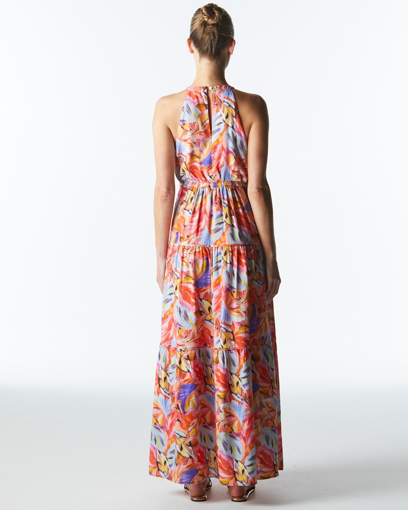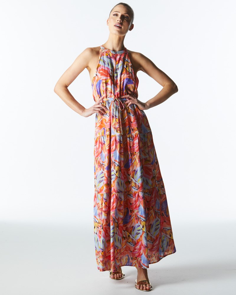 Elegant and effortless, the Midsummer Halter Maxi Dress is designed with a keyhole halter neckline and gathered tiered maxi length. Its relaxed fit and encased drawcord waist ensure refined comfort and sophisticated charm.